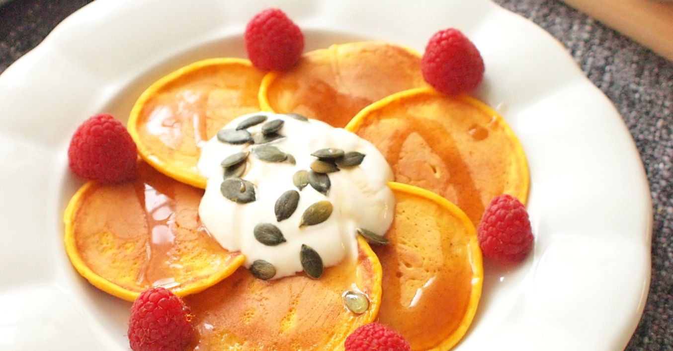 Mléko, vejce, dýňové pyré, prášek do pečiva a ličku cukru rozmixujeme ve vyšší nádobě tyčovým mixérem. Postupně přidáme mouku, rozpuštěné máslo a rozmixujeme na hladké těstíčko.