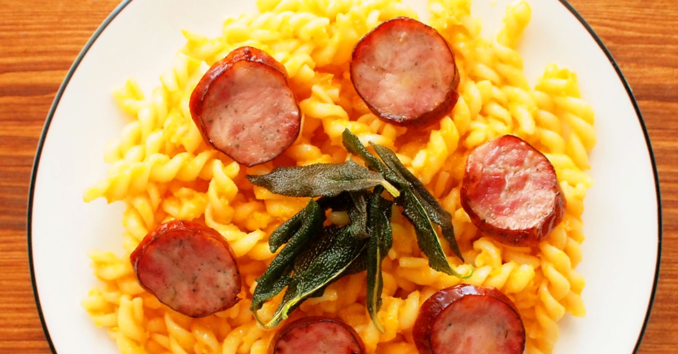 Dýňové těstoviny s klobáskou