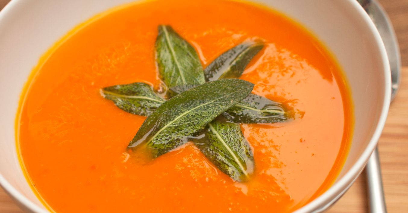 Na konci odstavíme, rozmixujeme tyčovým mixérem dohladka a přidáme zakysanou smetanu. Naposledy zkontrolujeme ochucení a podle potřeby doladíme solí a pepřem. Ještě horký krém podáváme.
