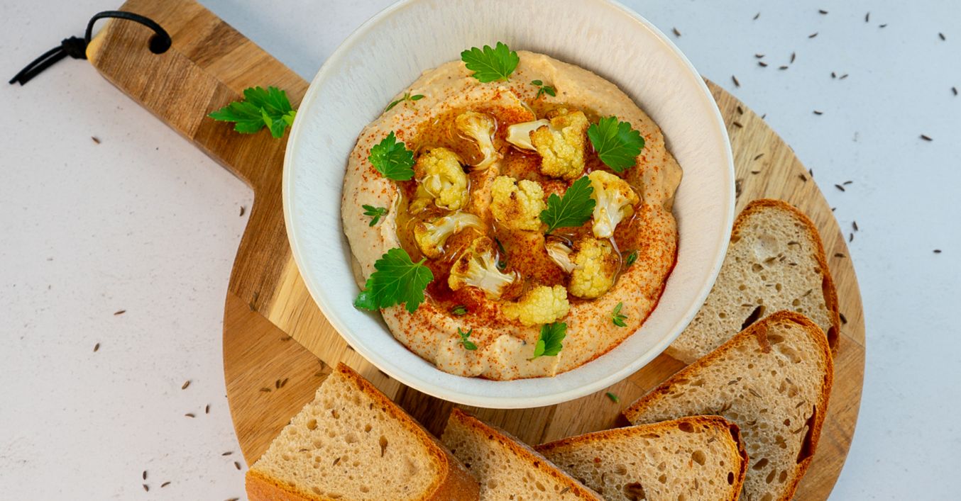 Fazolový hummus s pečeným květákem a ricottou