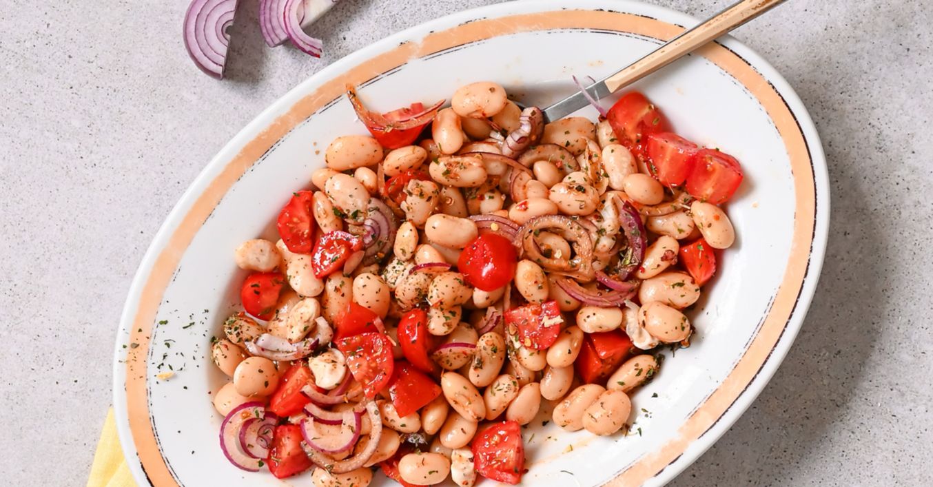 Fazolový salát s rajčaty a cibulí