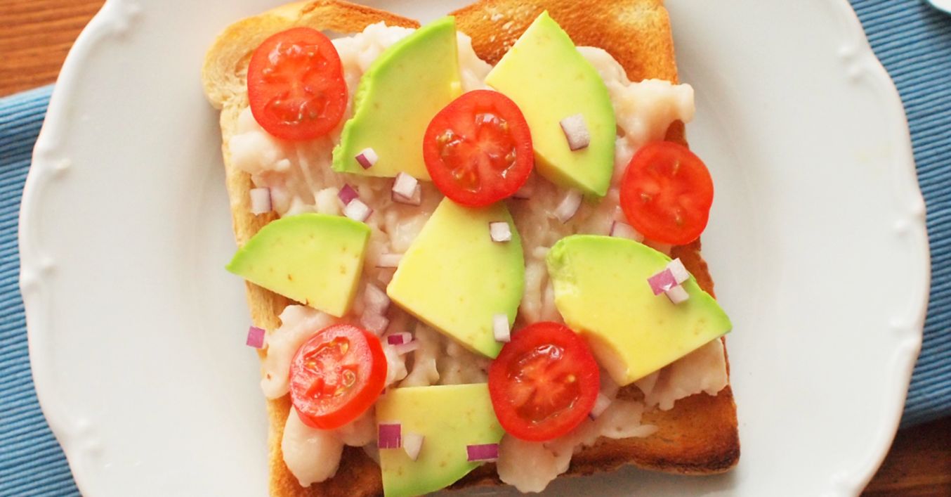 Fazole scedíme a dáme do mísy. Rozmačkáme vidličkou, vmícháme olivový olej a dochutíme solí a pepřem. Avokádo zakápneme limetkovou šťávou, osolíme a opepříme. Toasty potřeme směsí fazolí a ozdobíme cibulí, rajčaty a avokádem.
