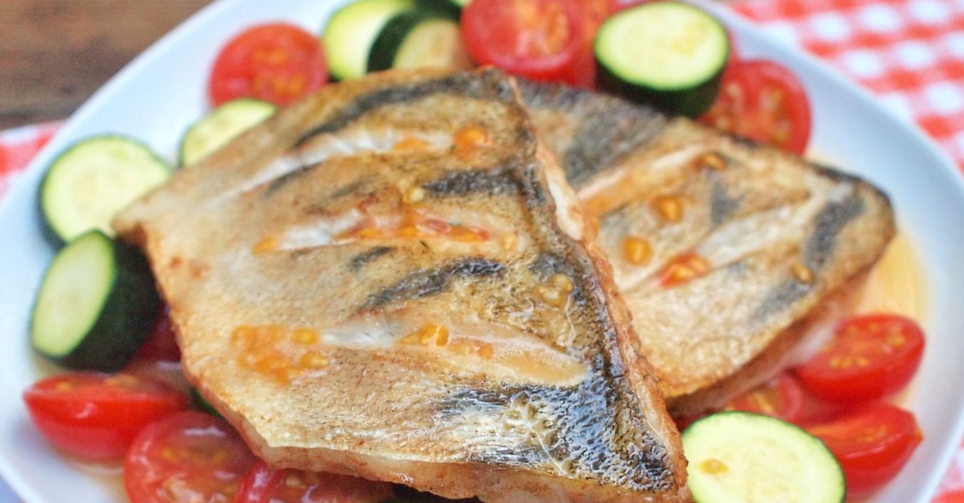 Připravené díly ryby opékáme na rozehřátém oleji a zbylém másle. Nejprve vždy na straně kůže dozlatova, poté otočíme a dopečeme i z druhé strany (dohromady asi 8 minut). Upečené filety zbavíme přebytečného tuku na ubrousku a podáváme spolu s dušenou cuketou.
