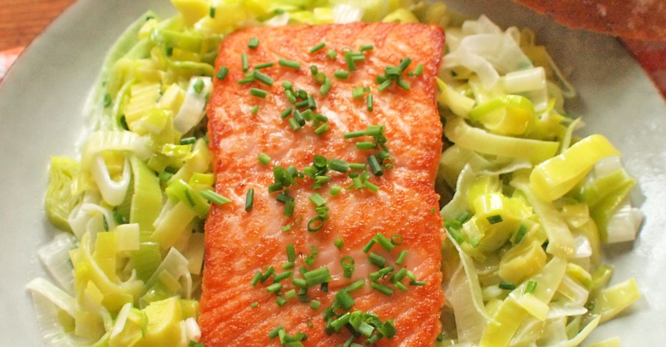 Lososa očistíme a osušíme. Z obou stran dobře osolíme a opepříme. V nepřilnavé pánvi rozehřejeme olej, přidáme lososa a opečeme z obou stran dozlatova (dohromady asi 8 až 10 minut podle výšky filetu). Podáváme s dušeným pórkem.