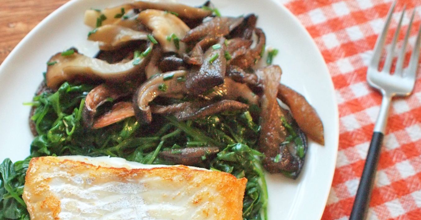 Česnek oloupeme a nakrájíme na tenké plátky. V pánvi rozehřejeme máslo, přidáme česnek a necháme zesklovatět. Přidáme špenát, osolíme, přiklopíme a necháme zavadnout. Poté už jen krátce dodusíme. Upečené filety servírujeme s připraveným špenátem a hlívou.