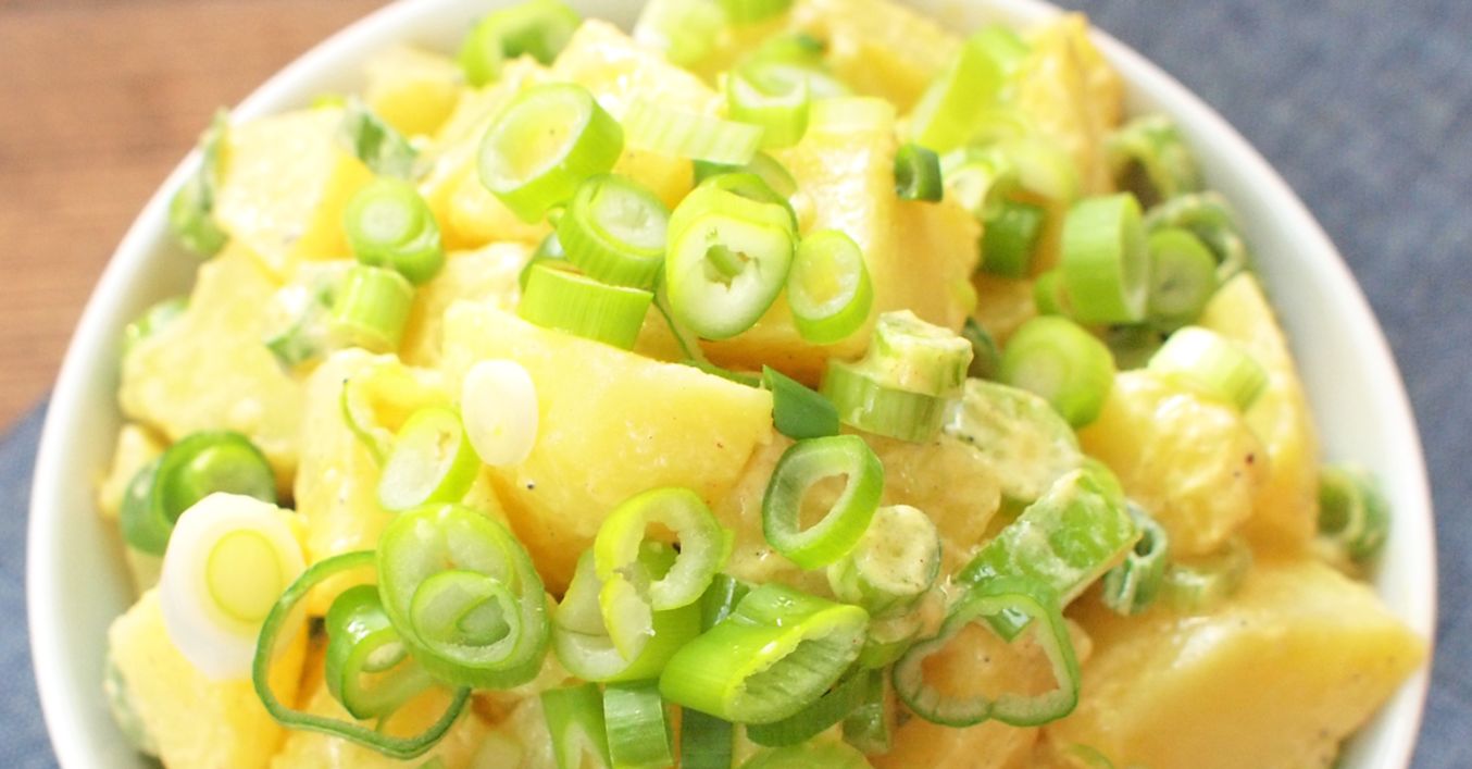 V míse promísíme brambory, jarní cibulku a zálivku. Necháme odležet v chladu a podáváme.
