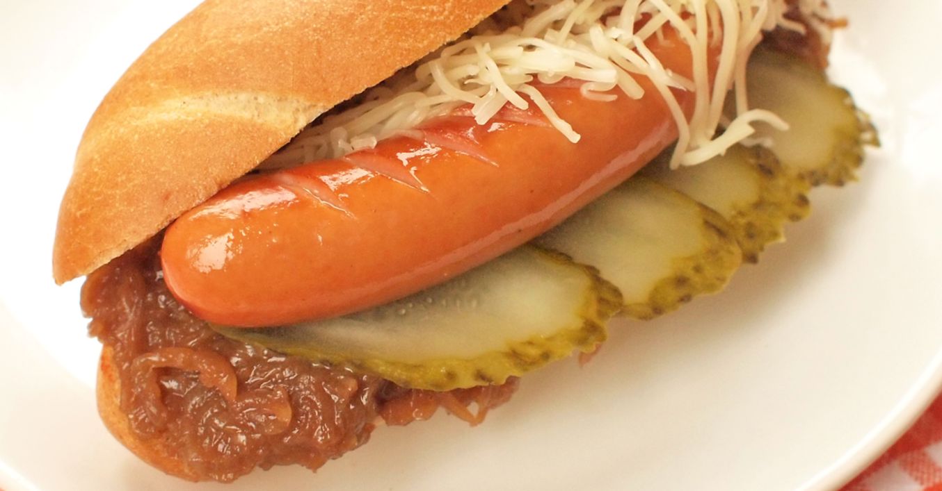 Polovinu žemle potřeme karamelizovanou cibulí, přidáme okurky, párek, sýr a přiklopíme druhou půlkou žemle, kterou jsme potřeli hořčicí. Podáváme, případně celý sendvič krátce zapečeme v troubě.