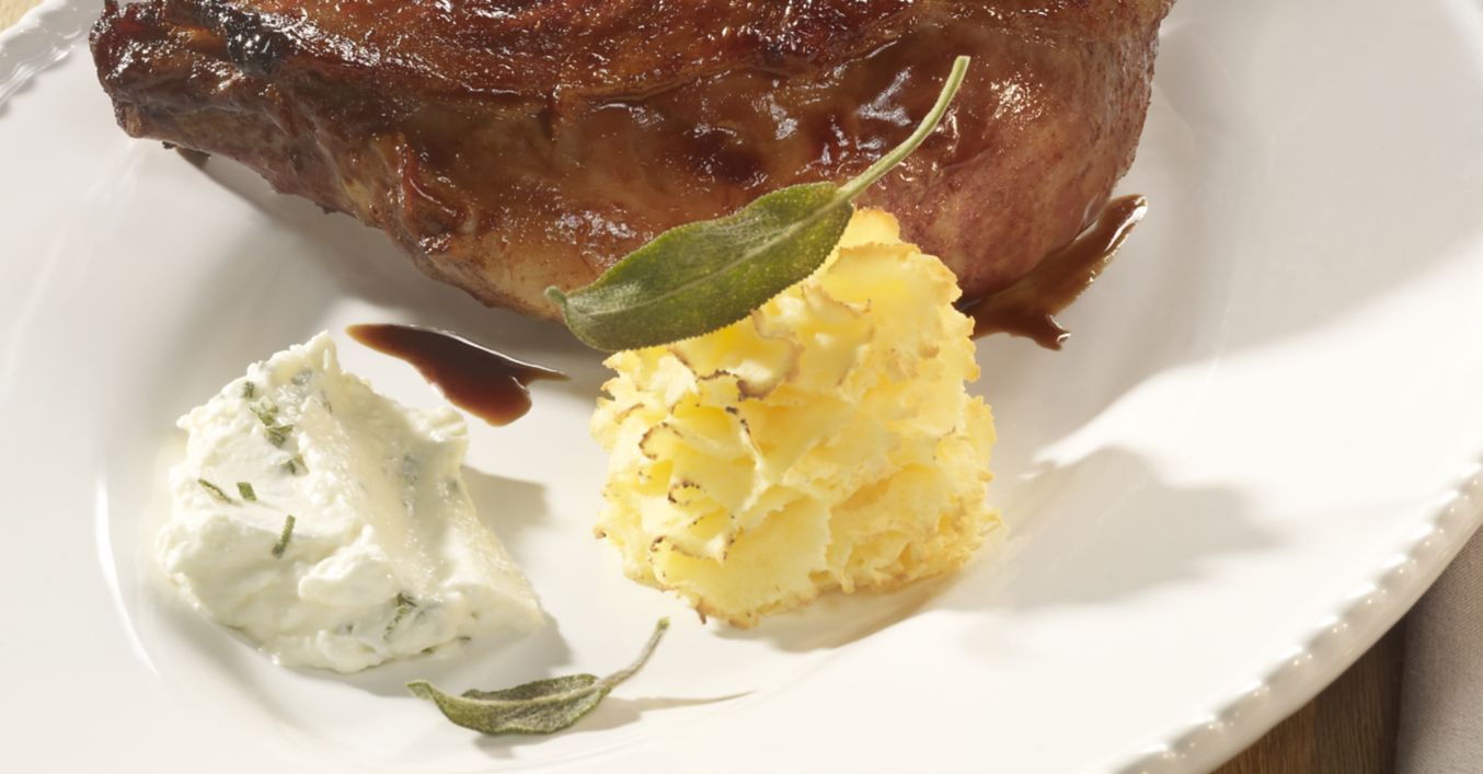 Glazírovaná husí stehna s bramborovými pusinkami