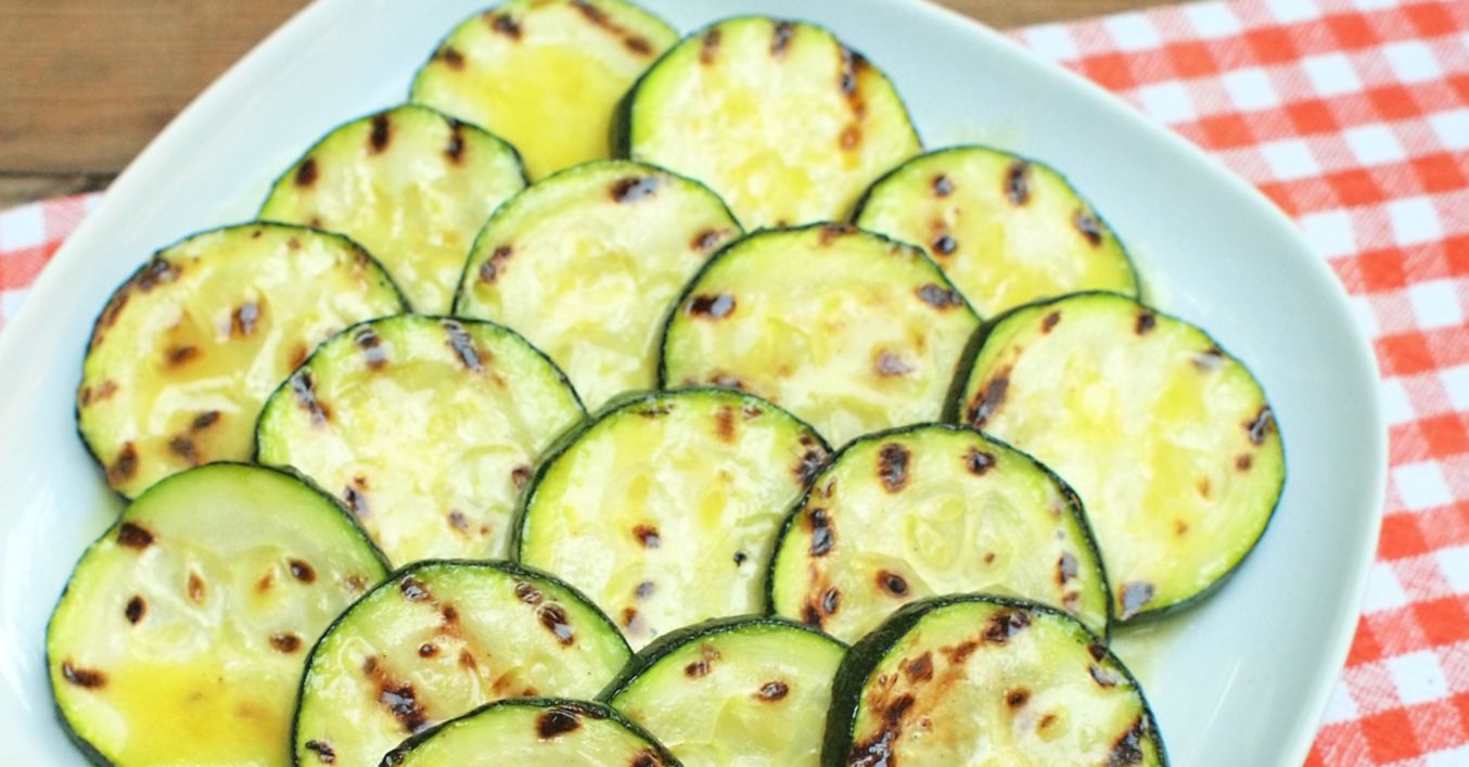 Odležené cuketové plátky osušíme, potřeme trochou oleje a grilujeme na středně rozpáleném grilu z obou stran do změknutí (asi 6 až 8 minut).