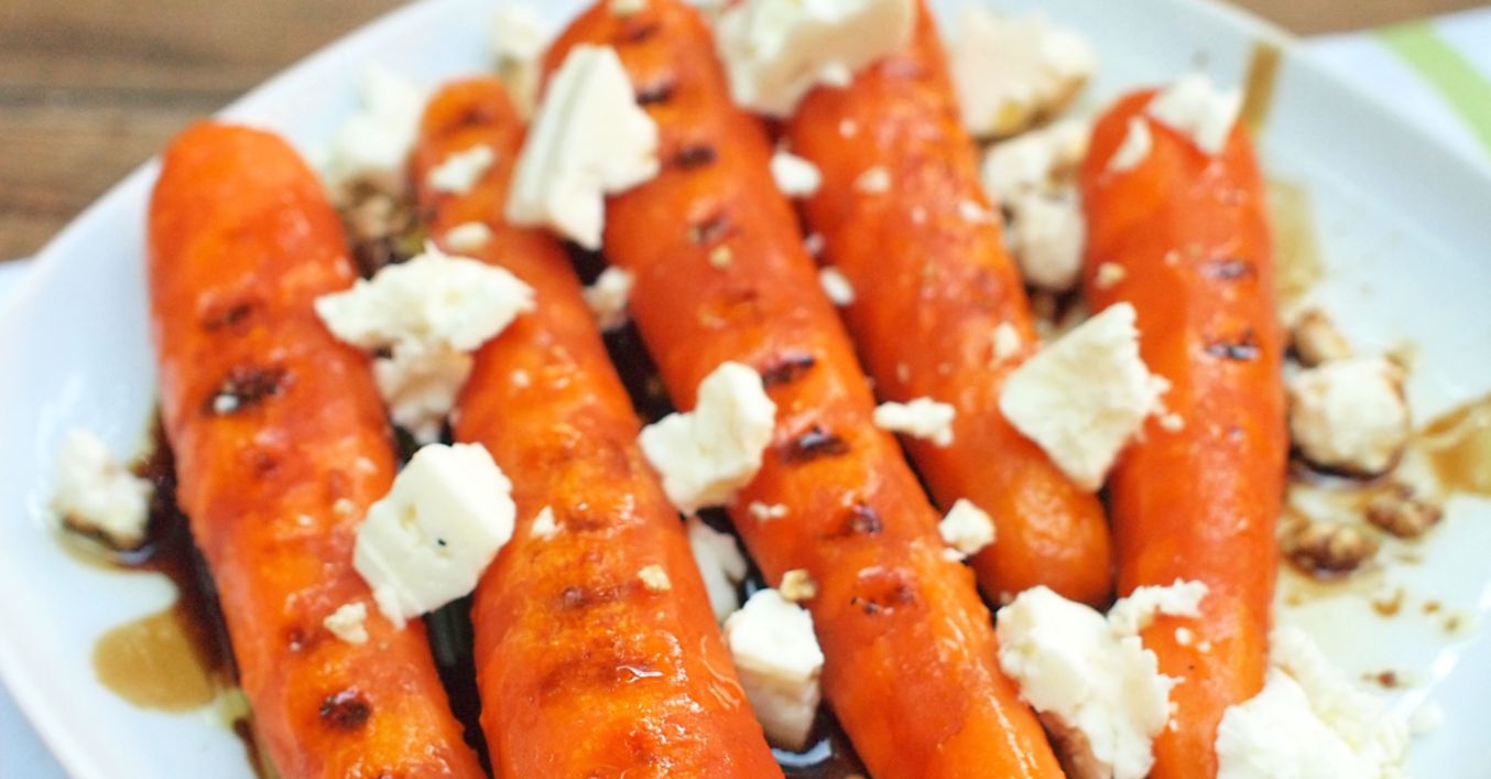 Hotovou mrkev rozdělíme na porce. Zakápneme aceto balsamico, olivovým olejem a přidáme nadrobený balkánský sýr.