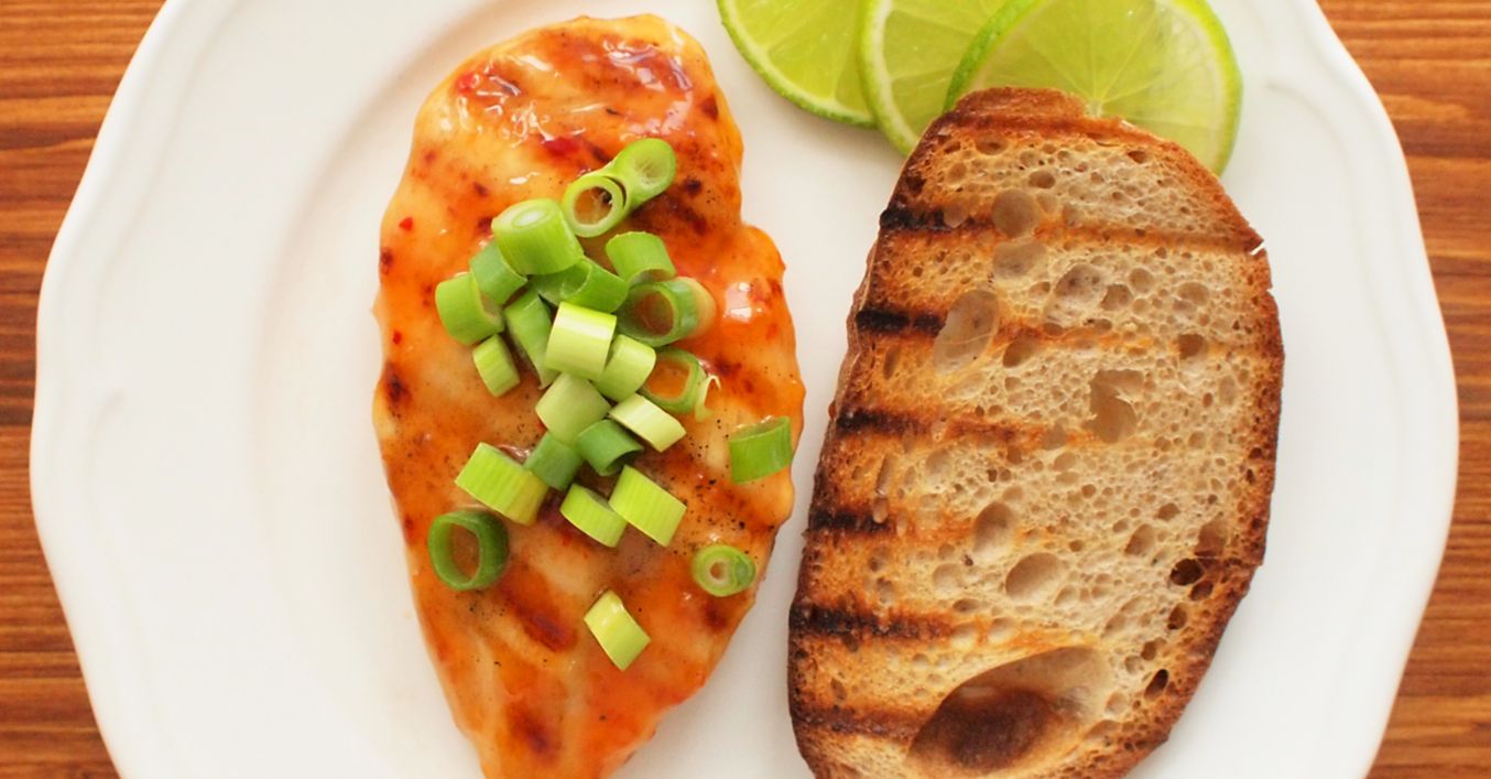 V misce smícháme chilli omáčku, sójovou omáčku, česnek, šťávu z limetky a olivovým olejem. Osolíme, opepříme a přidáme i trochu cukru. Marinádou obalíme kuře a necháme odležet zakryté v chladu.