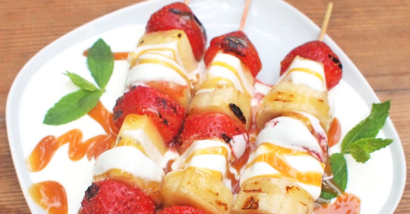 Grilované ovocné špízy se zakysanou smetanou