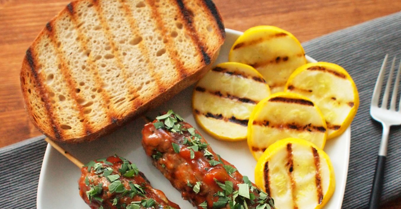 Z mletého masa vytvarujeme oválné tenké šišky, které napíchneme na špízy. Potřeme olejem a grilujeme na rozehřátém grilu postupně ze všech stran (dohromady asi 8 až 10 minut).