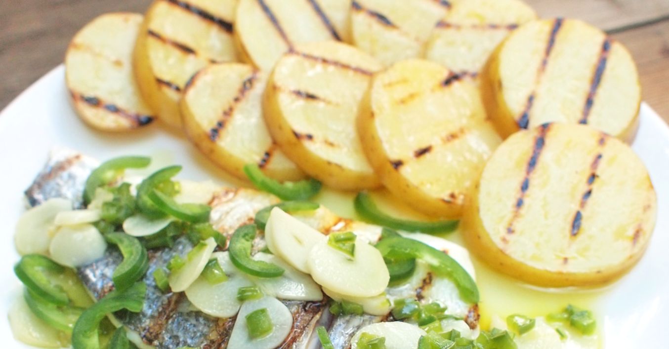 Grilovaný filet z pražmy s česnekem a jalapeňo papričkami