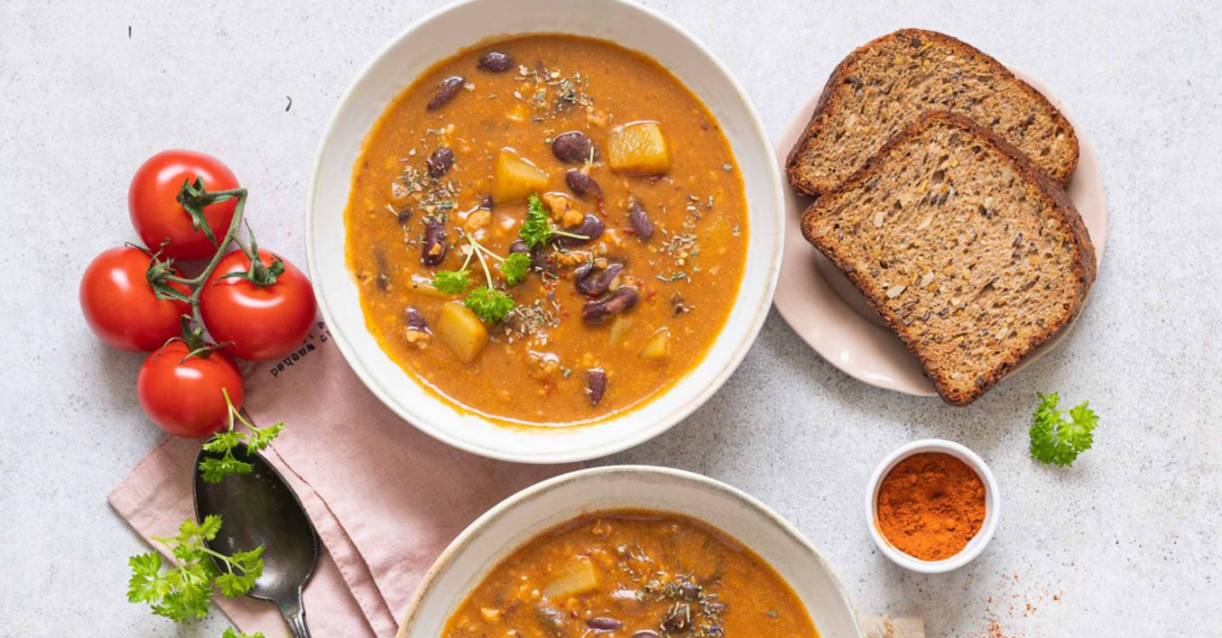 Gulášová polévka s fazolemi a vepřovým mletým masem