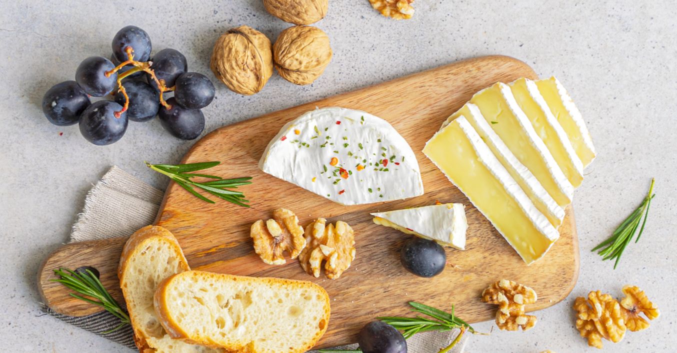 Hermelín nakrájejte na trojúhelníčky. Podávejte s hrozny, ořechy a pečivem.