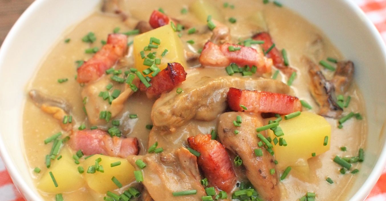 Houbová polévka se slaninou