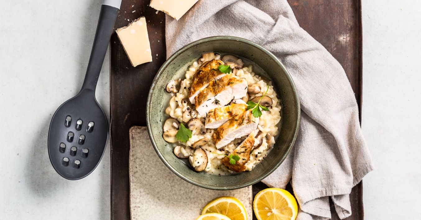 Houbové risotto s citronovým kuřetem