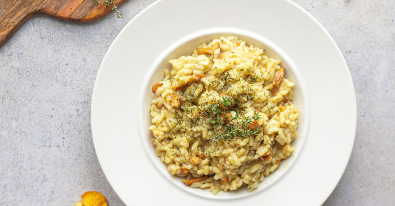 Přidejte houby, 1 naběračku vývaru a na mírném stupni vařte, dokud se voda zcela nevstřebá. Takto opakujte, dokud nespotřebujete všechen připravený vývar. Rýže by měla být uvařená na skus. Pokud je stále tvrdá, přidejte další vývar nebo vodu.