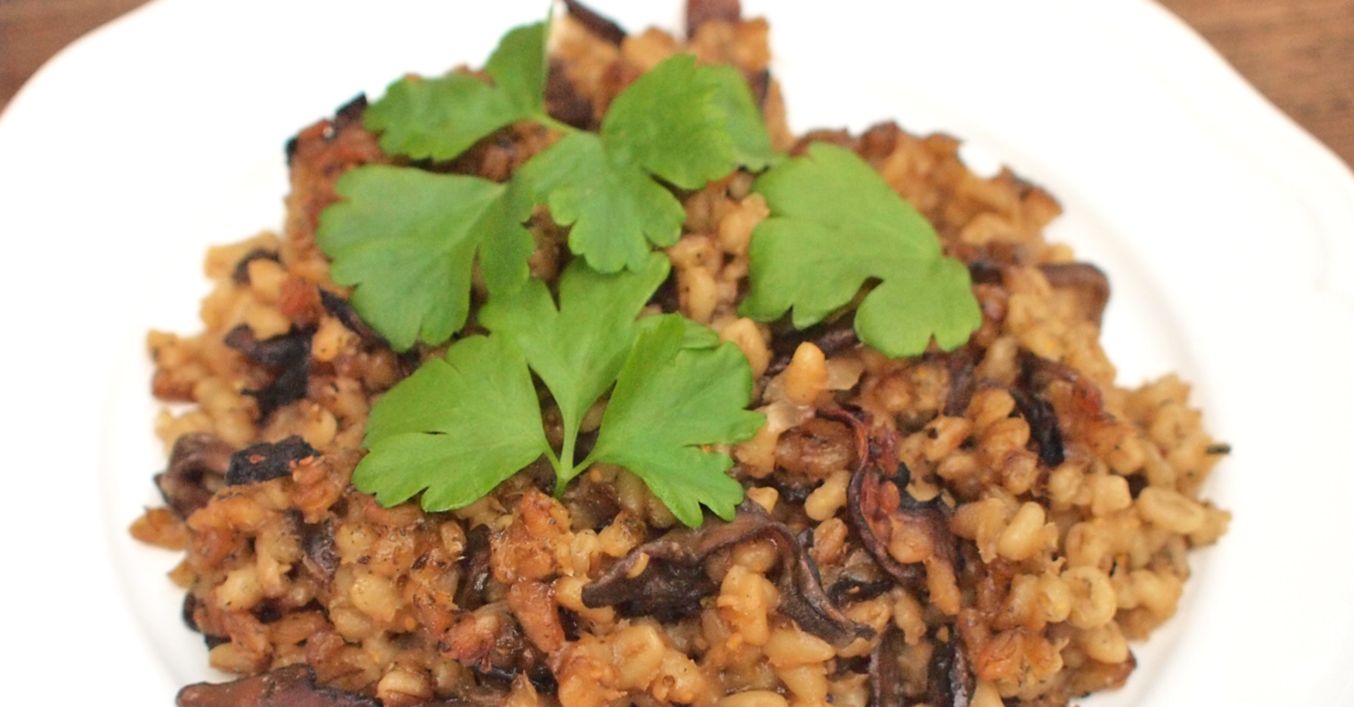 Houby dáme do misky, zalijeme je vodou a necháme asi 30 minut odležet. Kroupy uvaříme v dostatečném množství silněji osolené vody. Cibuli oloupeme a nakrájíme na kostičky. Česnek oloupeme a prolisujeme.