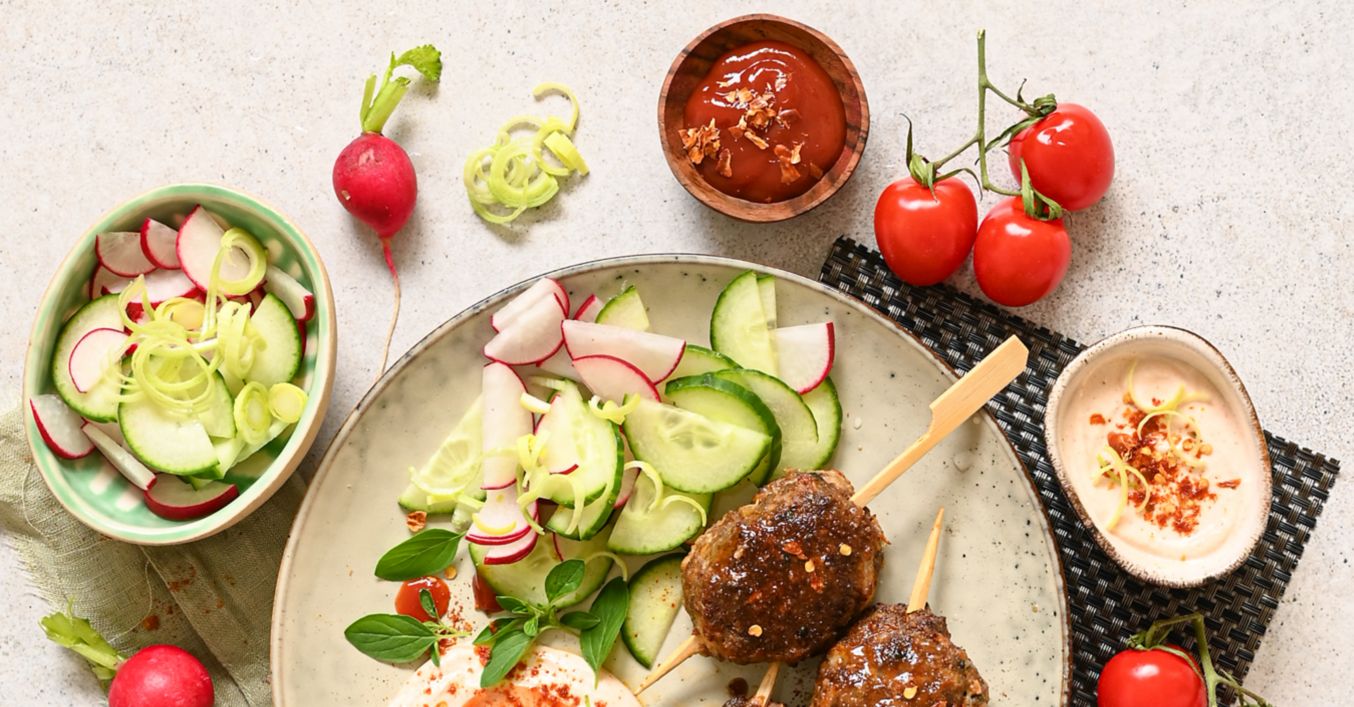 Ze směsi vytvořte menší válečky, které napichujte na grilovací špejle.
