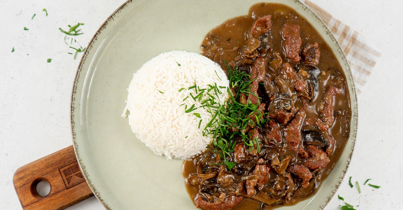 Hovězí na houbách s rýží