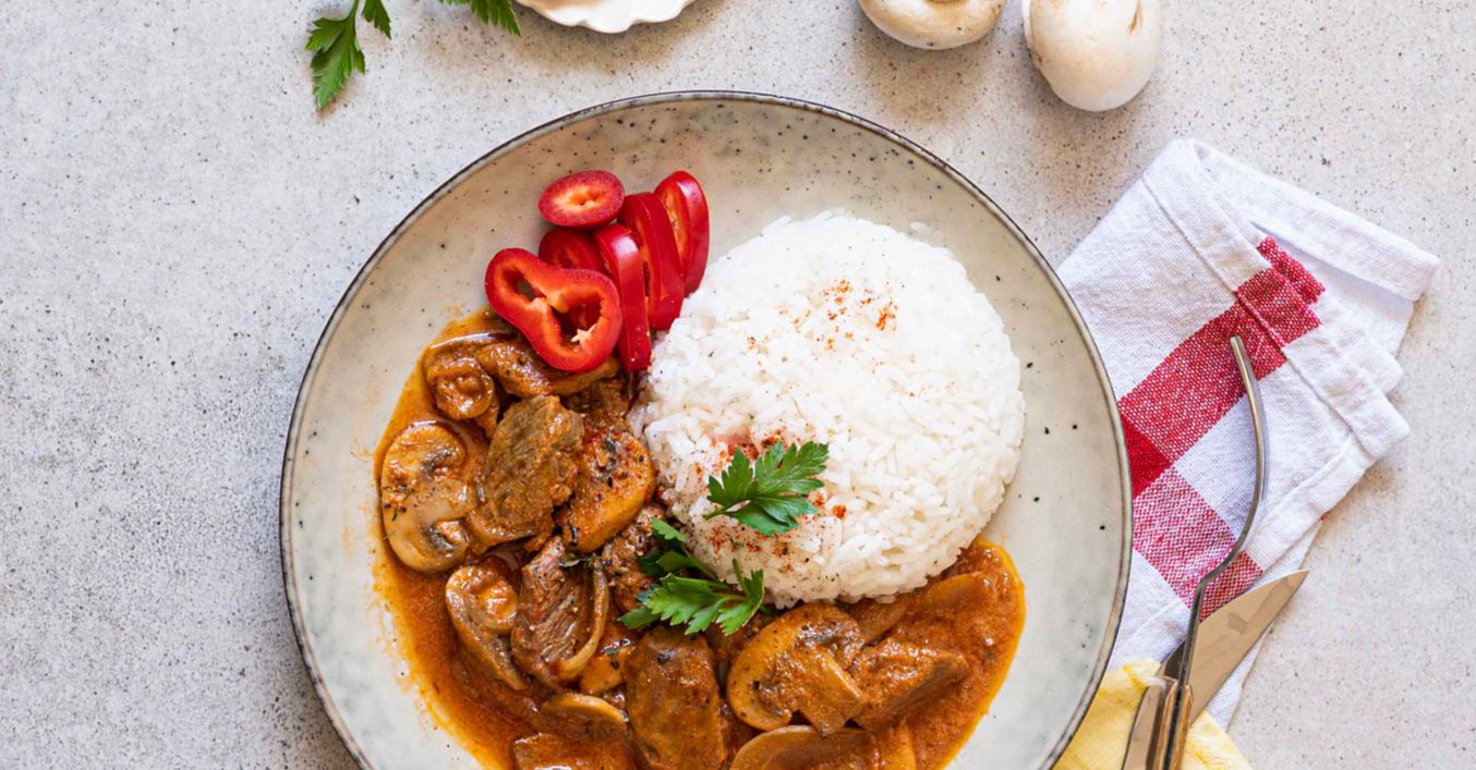 Hovězí nudličky na paprice se žampiony a cibulí