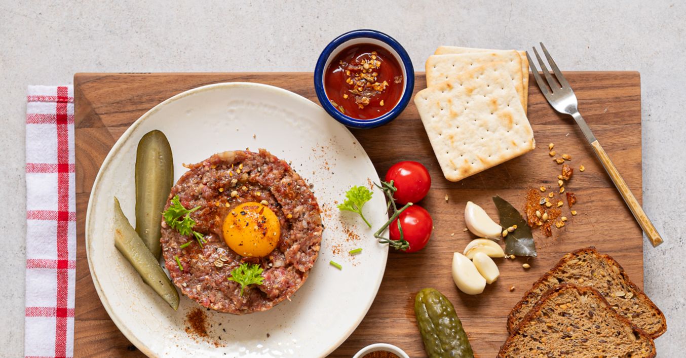 | 300 g | mletého hovězího masa na tatarák (svíčková) |