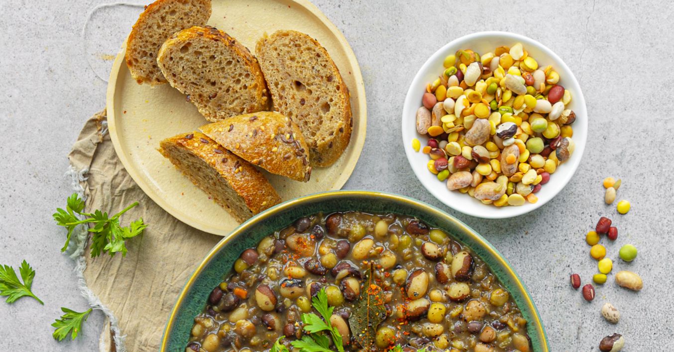 V hrnci rozehřejte olej a cibuli s česnekem orestujte dozlatova. Pak vmíchejte kmín, bobkové listy, mletou papriku, luštěniny a vývar. Vařte 45 minut nebo do změknutí.