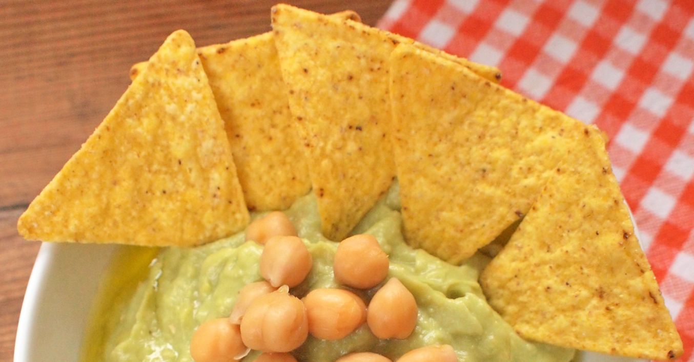 Hummus s avokádem s tortilla chipsy