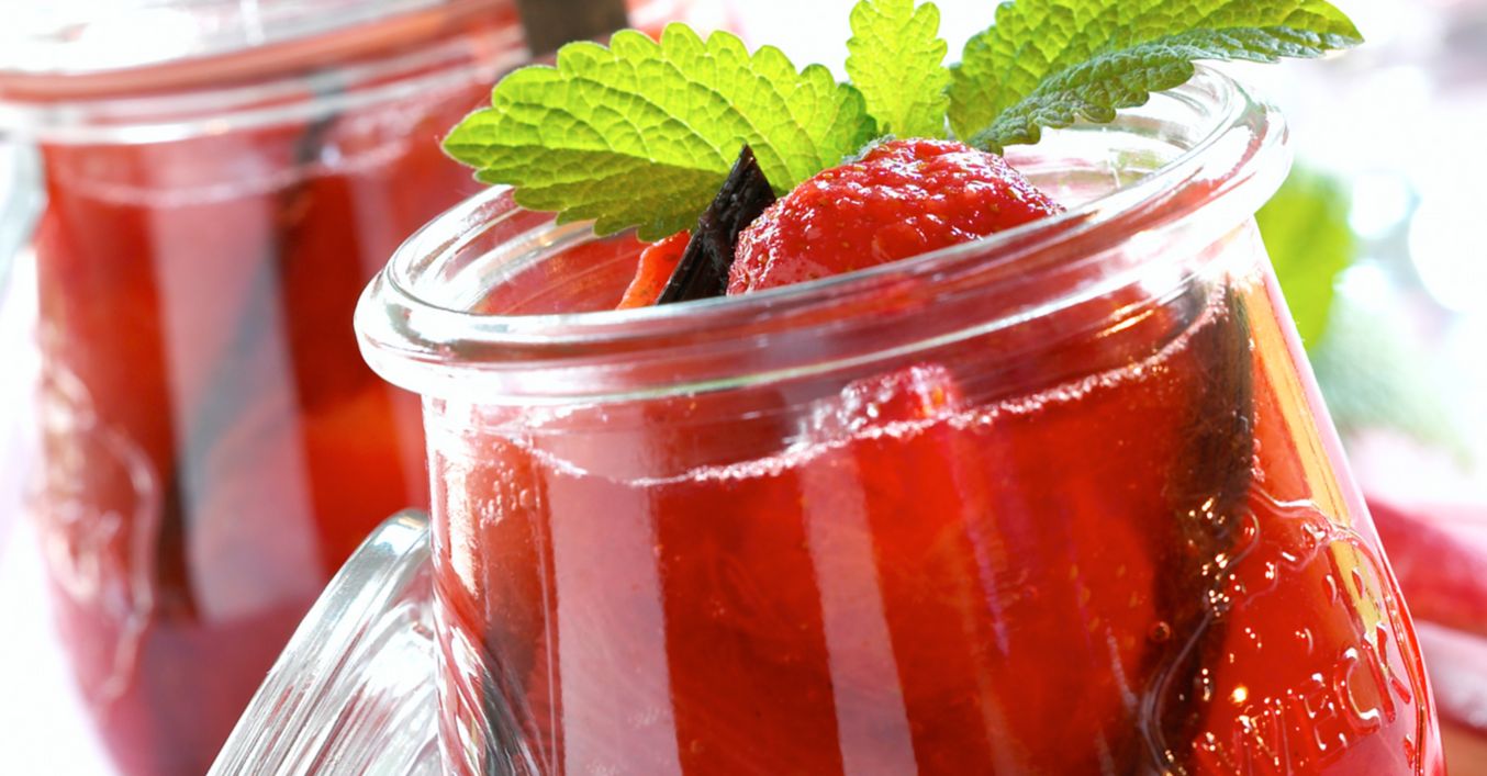 Rebarboru zasypeme cukrem, přidáme zrníčka vanilky a necháme asi 30 minut marinovat. Pak přidáme jahody s likérem a přendáme do rendlíku. Přidáme i zbylé vanilkové lusky, přivedeme k varu a krátce povaříme.
