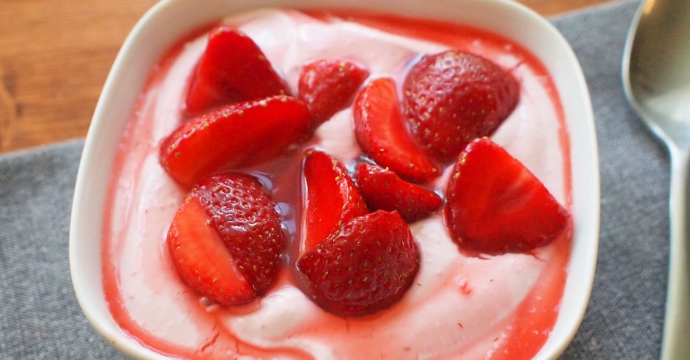 Jahody očistíme a zbavíme stopky. Poté je rozmixujeme s vanilkovým cukrem a zakysanou smetanou dohladka.