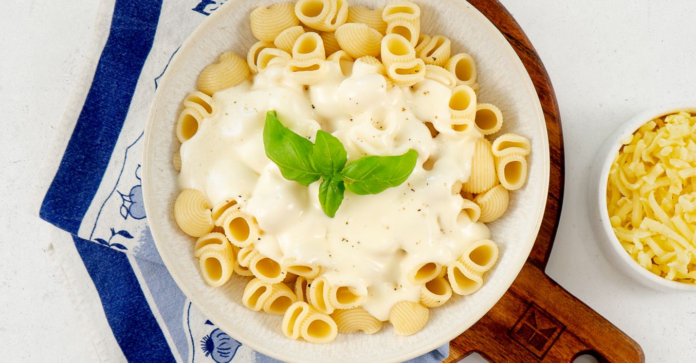Uvařenou omáčku scedíme přes jemné síto, zahřejeme a vmícháme nastrouhaný sýr. Ihned a ještě horké podáváme.