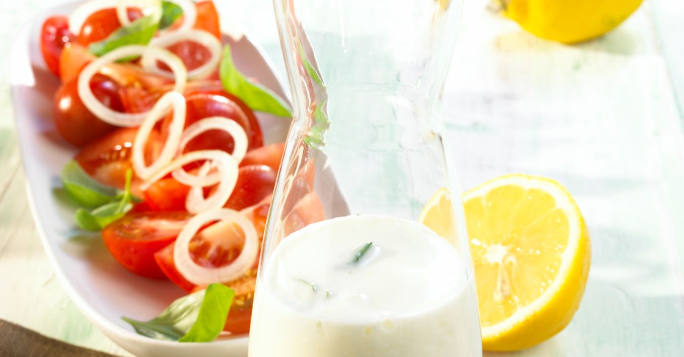 V misce smícháme jogurt, česnek, ocet a bazalku. Podle chuti dochutíme solí, pepřem a citronovou šťávou.