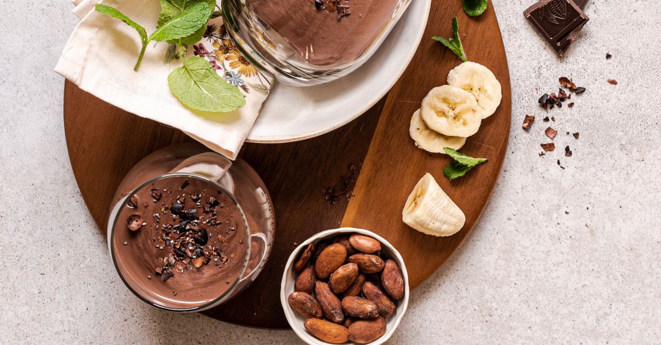 | na ozdobení: kakaové boby, chia semínka |
