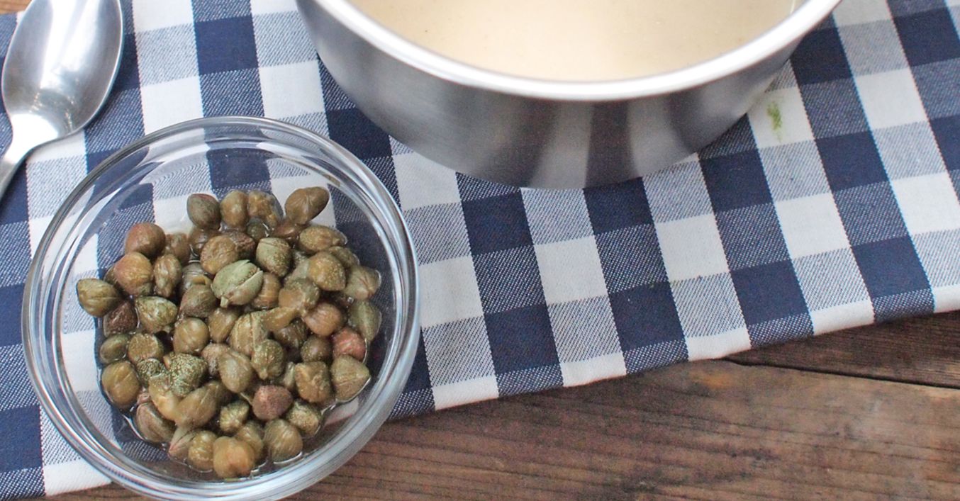 Povaříme asi 10 až 15 minut. Scedíme přes jemné síto, vmícháme smetanu a dochutíme solí a pepřem. Úplně nakonec přidáme kapary, promícháme a podáváme.