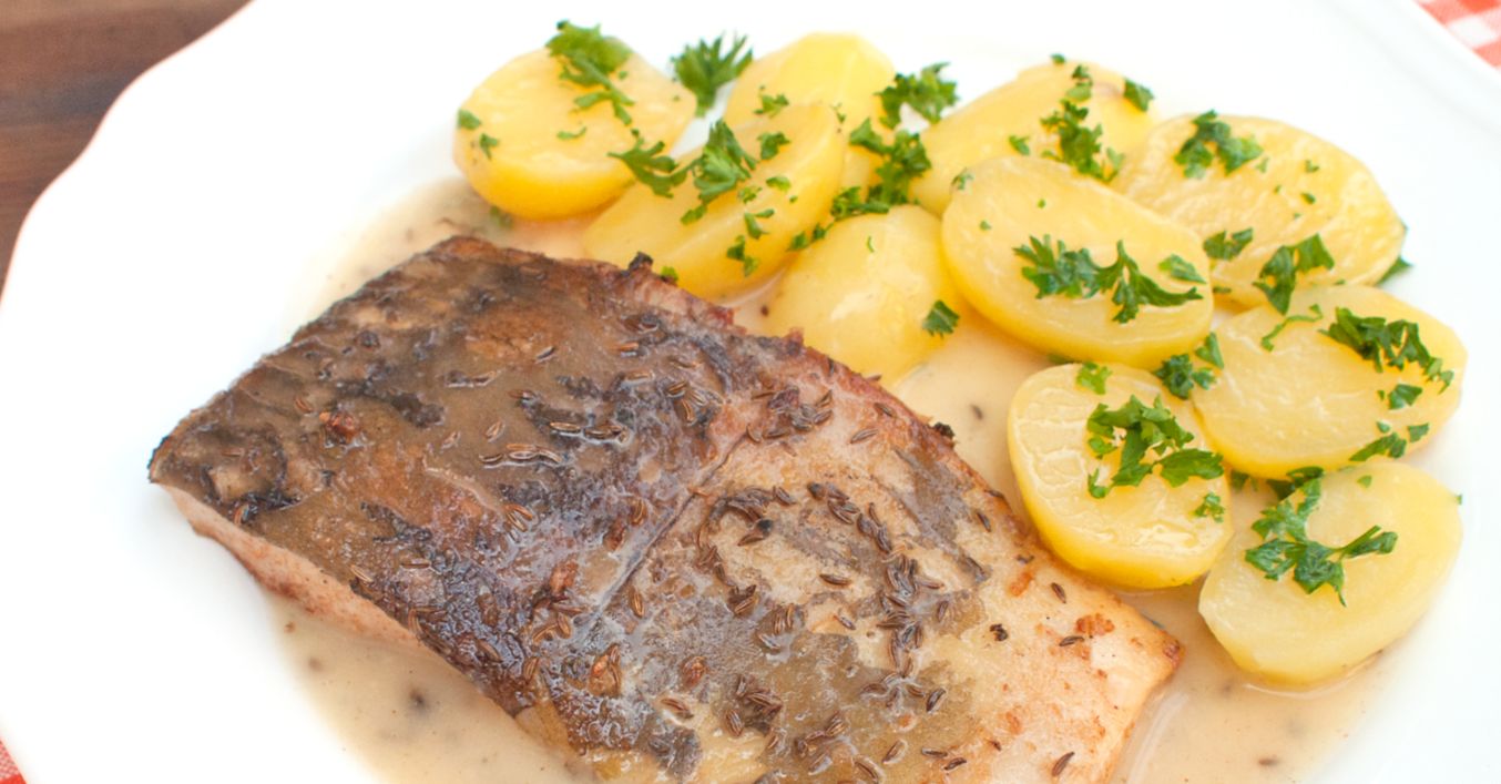 Filety kapra posolíme, pořádně okmínujeme a necháme chvíli odležet. Na pánvi si rozehřejeme 2 lžíce másla, a jakmile se vypění, osušíme filety utěrkou a dáme je do pánve kůží naspod. Opékáme 5 minut na středním plameni a poté je opatrně otočíme. Z druhé strany dáme filetům pouze 3 minuty, vyjmeme je a dáme je zakryté do tepla.
