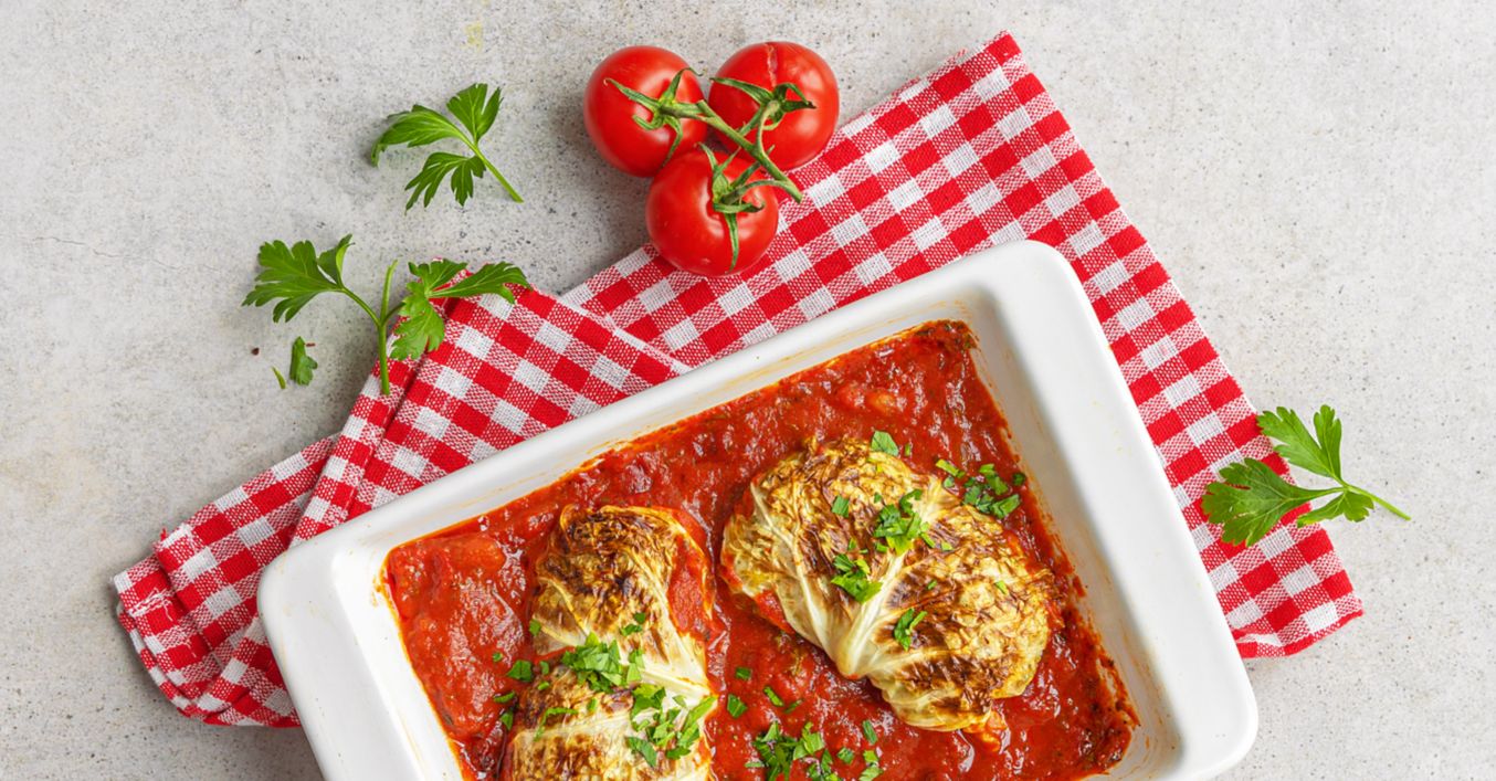 Kapustové závitky s rýží a mletým masem v rajčatové omáčce