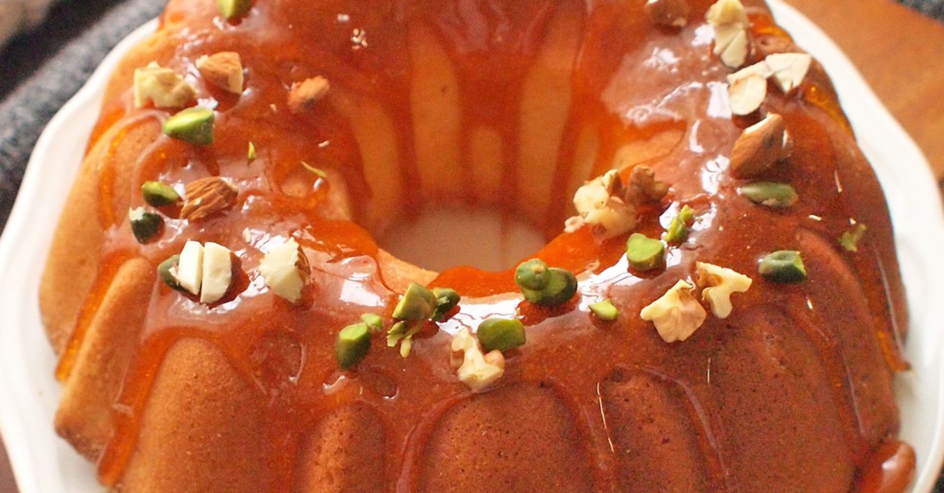 Cukr na karamel dáme do rendlíku. Dáme na střední plamen a necháme cukr rozpustit. Zmírníme plamen a necháme cukr karamelizovat do zlatohnědé barvy. Hotovým karamelem opatrně zalijeme bábovku a ihned zasypeme připravenými nasekanými ořechy.