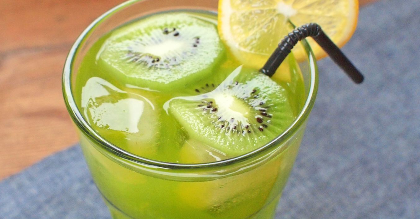 Z citronu vykrojíme dva plátky, zbytek vymačkáme. Kiwi oloupeme škrabkou a nakrájíme na plátky.