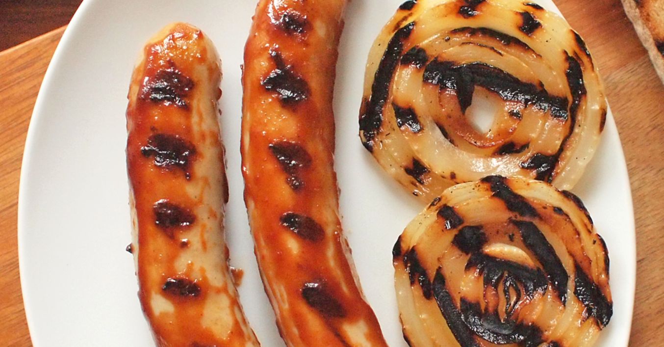 Klobásky na grilu s cibulí a BBQ omáčkou