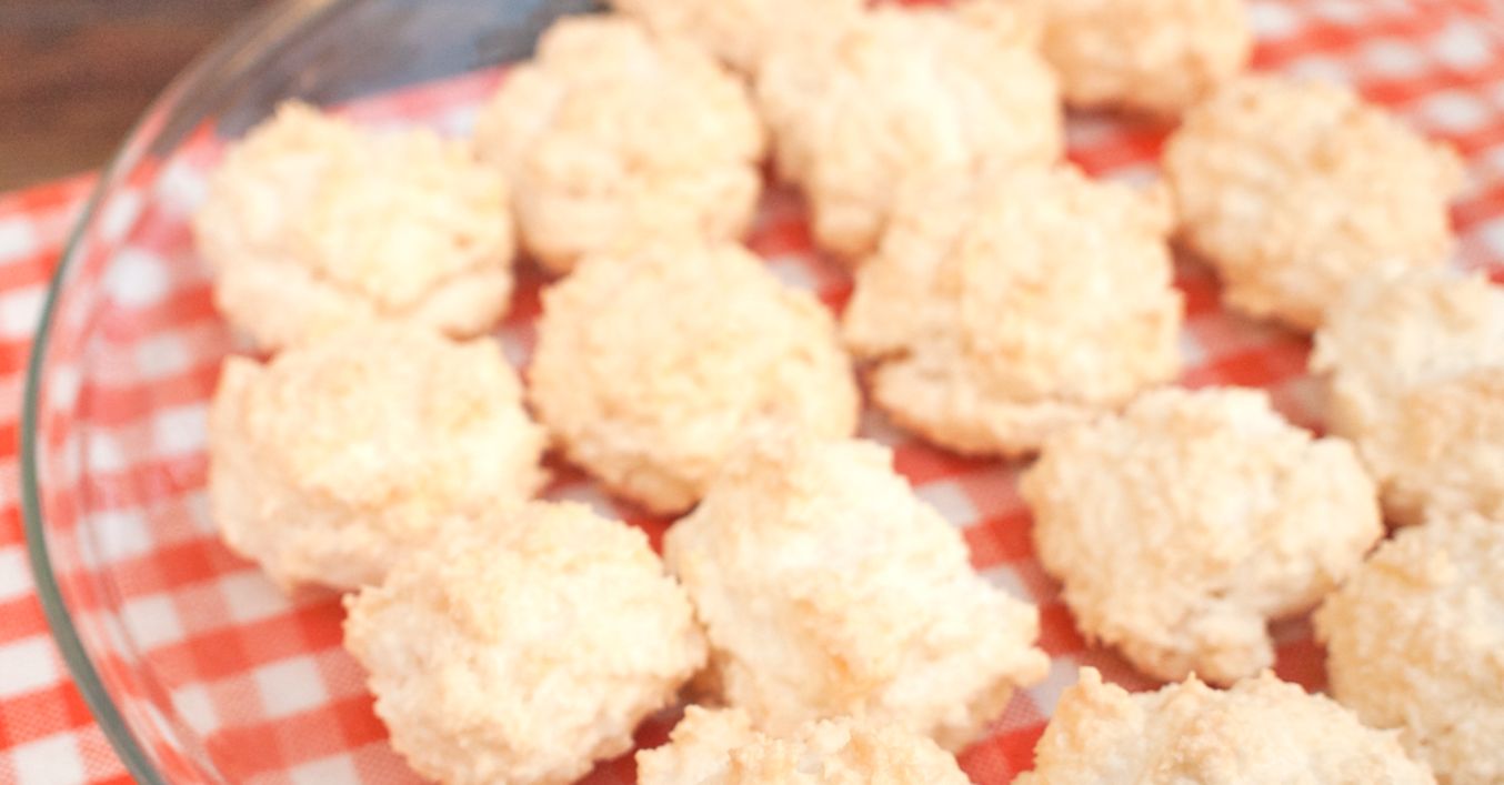 Lžící z kokosové směsi vykrajujeme jednotlivé pusinky (velikosti malého vlašského ořechu) a přemisťujeme je na pečicím papírem vyložený plech.