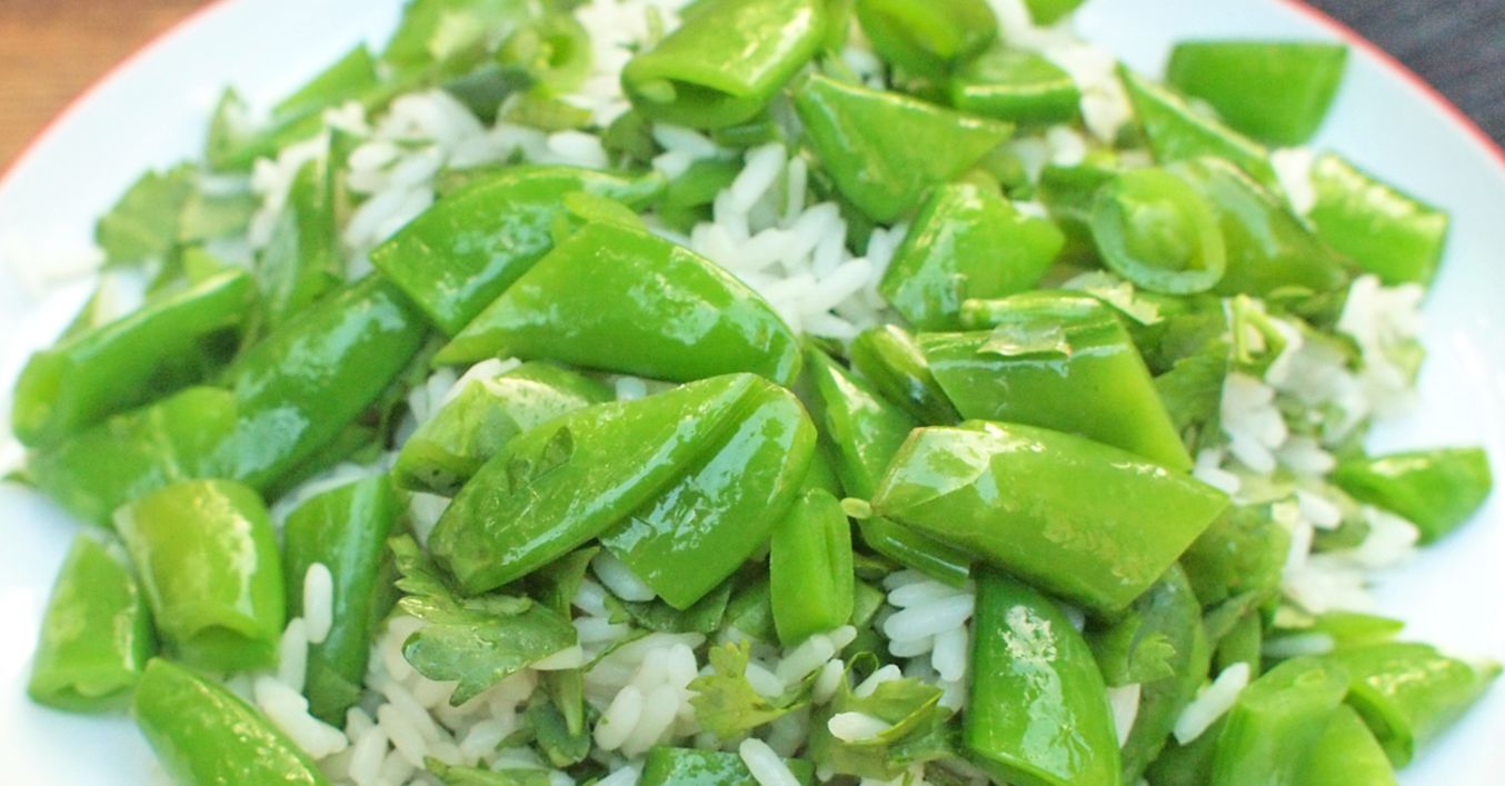 Koriandrová rýže s hráškovými lusky