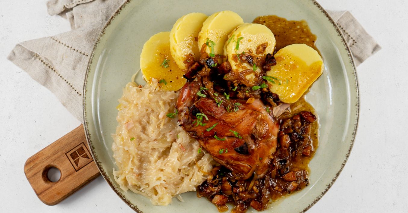 Králíka podávejte se zelím a bramborovým knedlíkem.