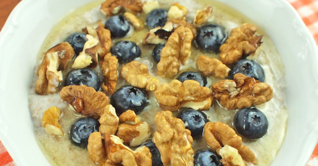 Odstavíme, vmícháme lžíci másla a zakysané smetany. Podáváme spolu s ořechy, ovocem a medem.