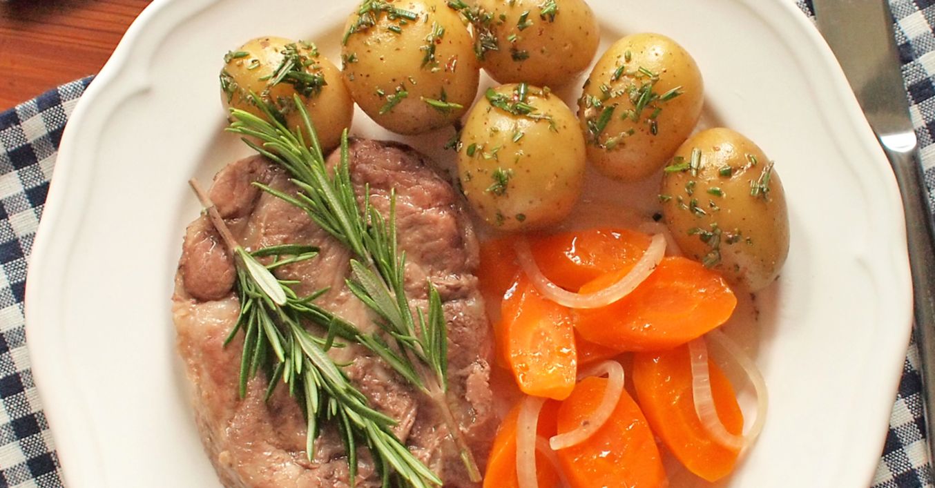 Krkovička v alobalu s bramborem a mrkví