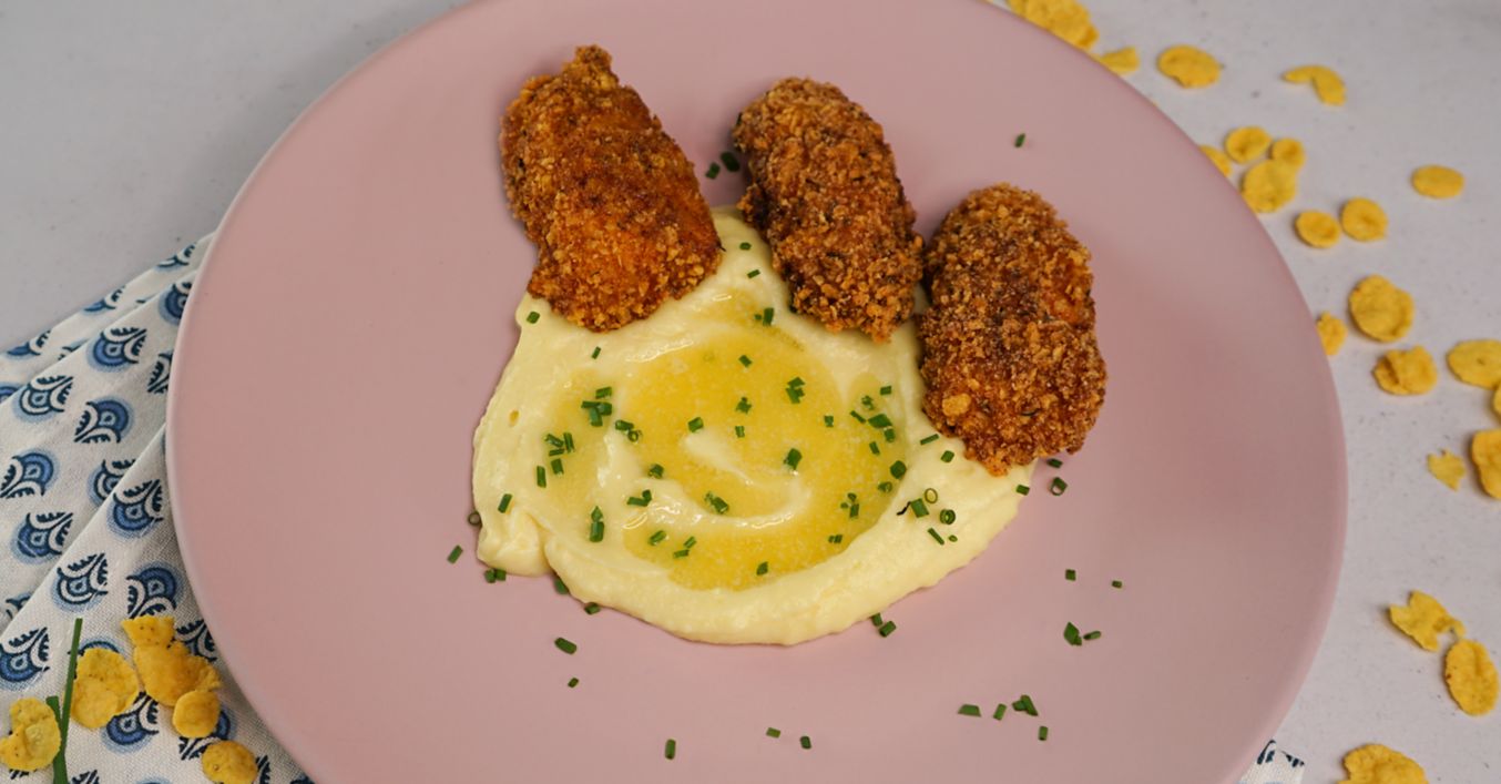 Křupavé kuřecí stripsy s bramborovou kaší