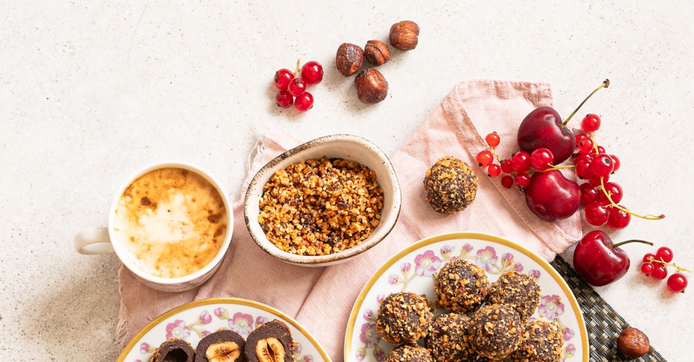 Směs rozdělte na malé kousky, do kterých vkládejte lískové ořechy, které jste ponechali vcelku. Pak vytvarujte kuličky, které obalujte ve zbylých rozmixovaných ořeších.