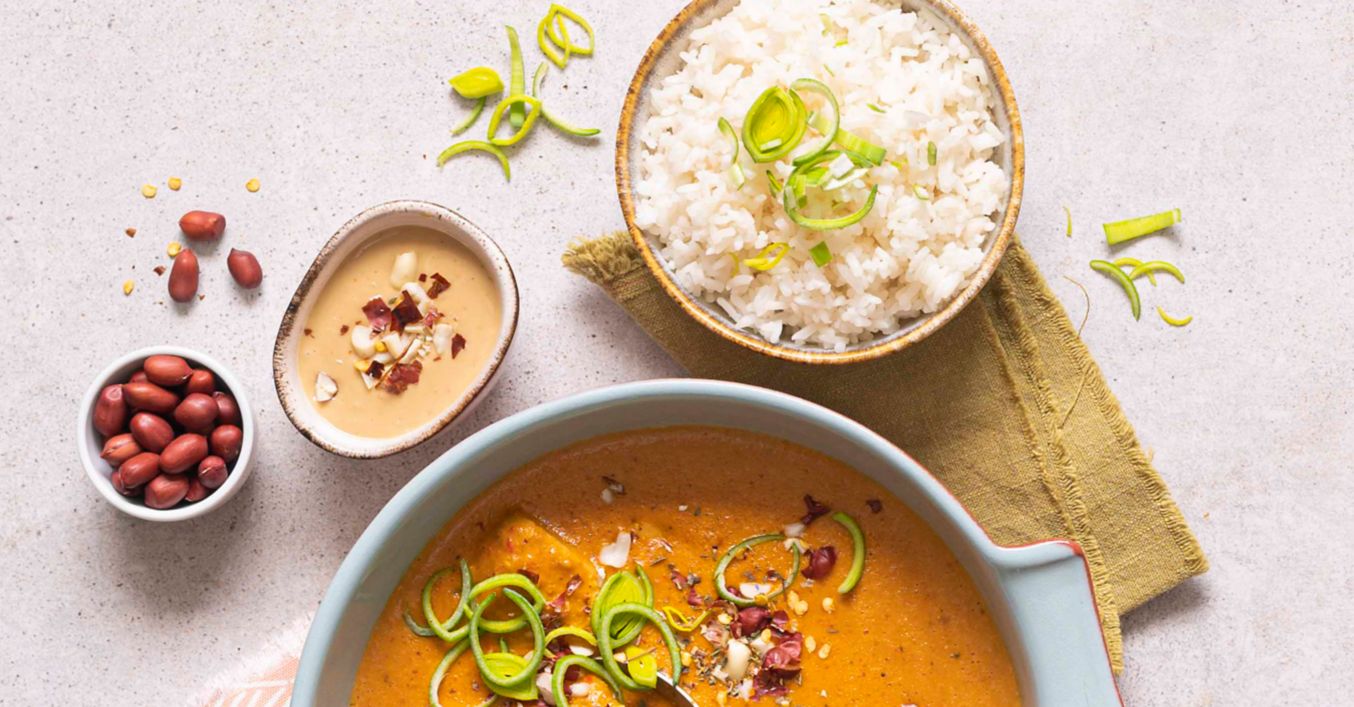 Podávejte s rýží, čerstvým pórkem a nahrubo nadrcenými arašídy.