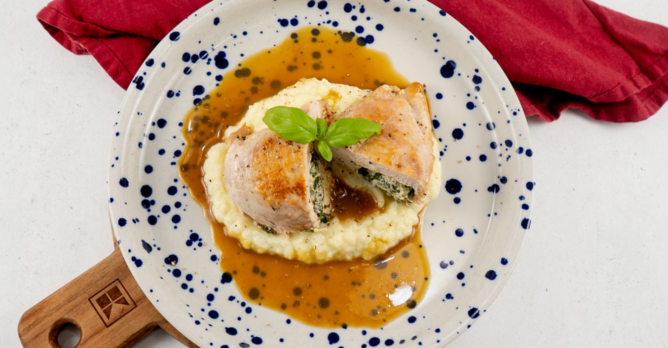 Kuřecí prsa nadívaná špenátem a sušenými rajčaty